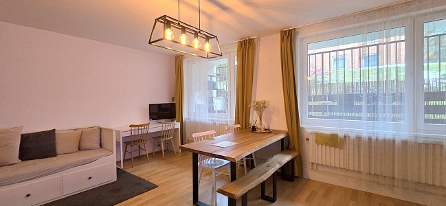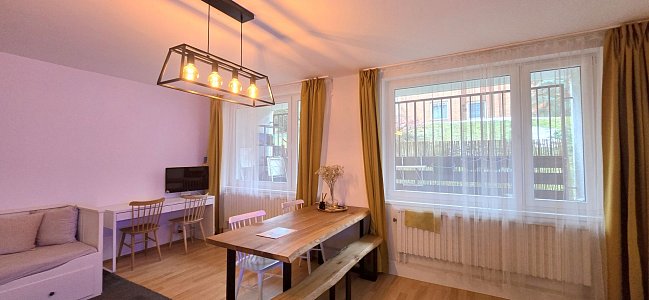 Byt je ve velmi dobrém stavu, po kvalitní rekonstrukci, která zahrnovala předsíň, novou koupelnu a nový plynový kotel. Je důležité poznamenat, že nábytek na připojených fotografiích není součástí prodeje, což umožňuje novému majiteli zařídit si byt podle vlastních představ.
