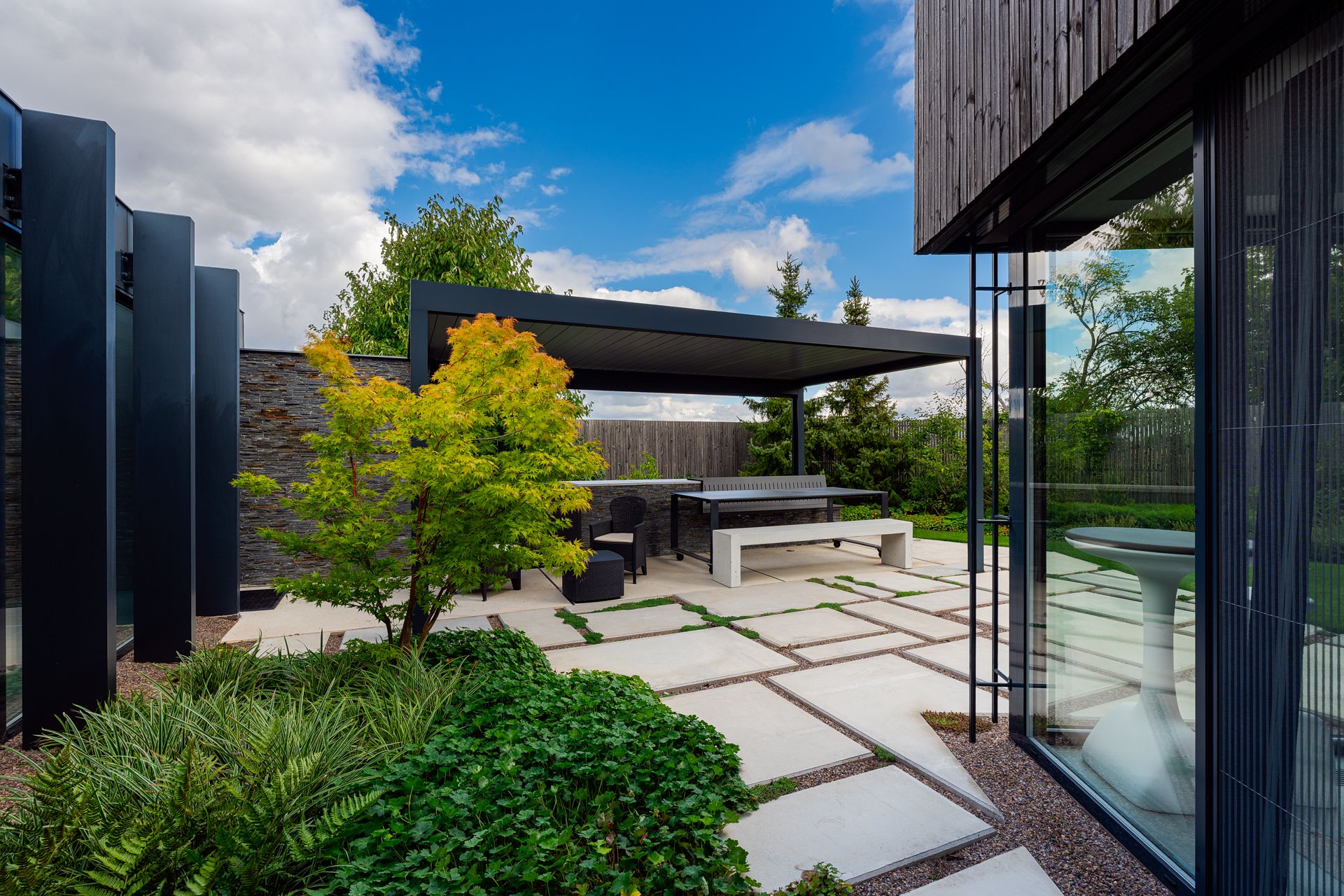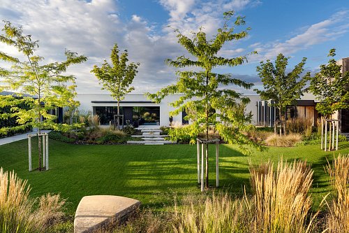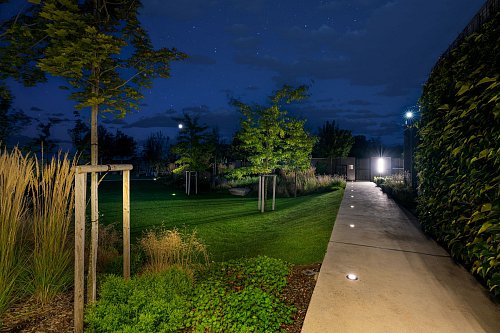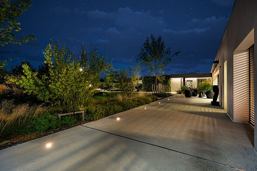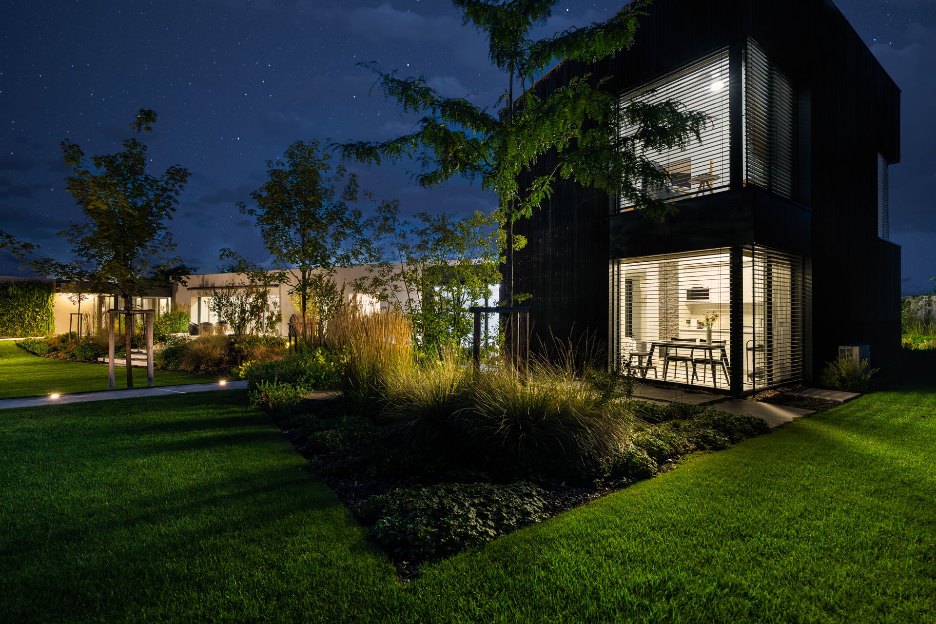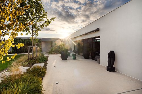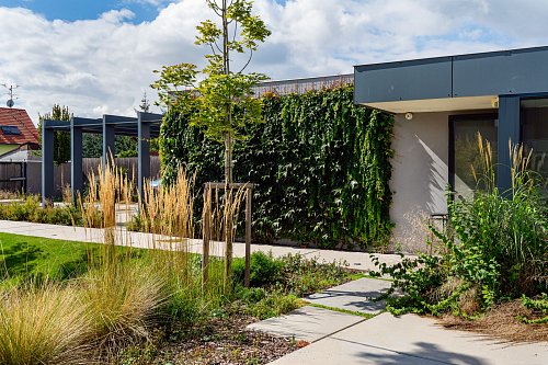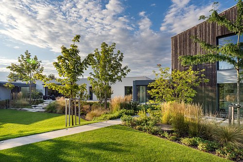 Celý obytný areál je koncipován tak, aby umožňoval plynulé procházení jednotlivými částmi domu i zahrady, čímž se vytváří pocit harmonie a klidu.